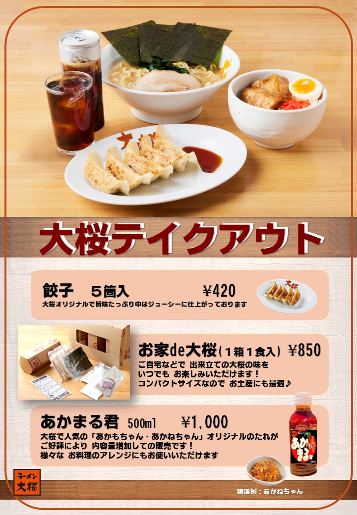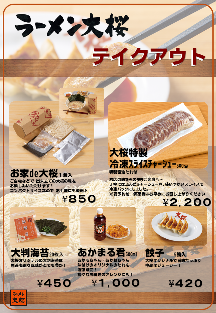 お客様のご要望に応え、自動販売機を設置しました(一部店舗)24時間。手軽で本格的な大桜の味をご自宅でお楽しみいただけます。常温保存も出来、お土産にも喜ばれるパッケージです。多忙な日常の中に、心も体もあたたまる時間をご提供いたします。